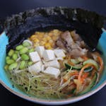 Japońskie danie na bulionie z makaronem pszennym, tofu oraz grzybami.